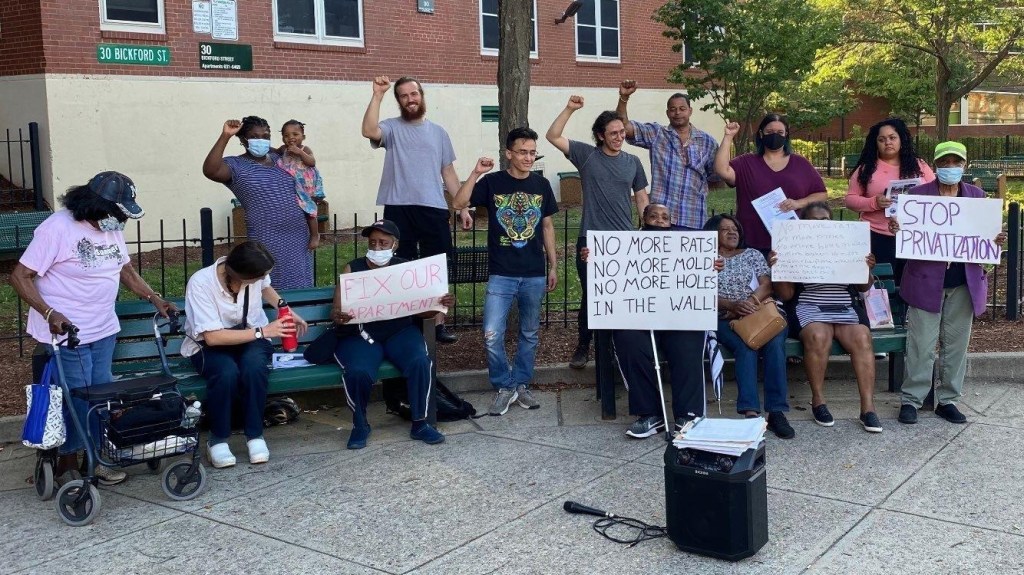 Overall, this set up would clearly worsen gentrification of the whole neighborhood immediately by adding in more expensive apartments, and set the stage for even more intense gentrification over the long term. This gentrifying scheme, like any other, does mean displacement sooner or later. But what about immediate displacement during the redevelopment? It is certainly possible for them not to immediately kick out a large portion of residents during the redevelopment itself. But the fact is, government and developer promises of a “right to return” are flimsy at best. People displaced during Urban Renewal still have pieces of paper promising them their ‘right to return.’ And during the privatizations, the ‘right to return’ is always conditioned on ‘good standing’ as BHA itself says. Some tenants have fallen behind on rent because of expenses related to BHA’s shoddy maintenance: replacing furniture, clothes, food, etc. ruined by the leaks, rodents, and cockroaches. Others lost income during the pandemic or had to take care of medical expenses, or have had fake accusations of back rent or lease violations made up by housing in order to bully them. Already, BHA threatens such residents with eviction and harasses them. So why should we believe BHA’s oversight over the new owners of the units will in fact protect such residents?