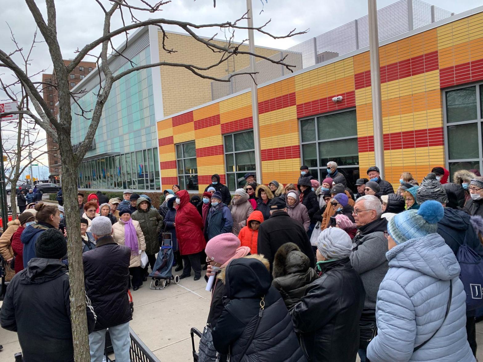 NYCHA tenants outside the YMCA in Coney Island at UFAD meeting against privatization, January 21st,