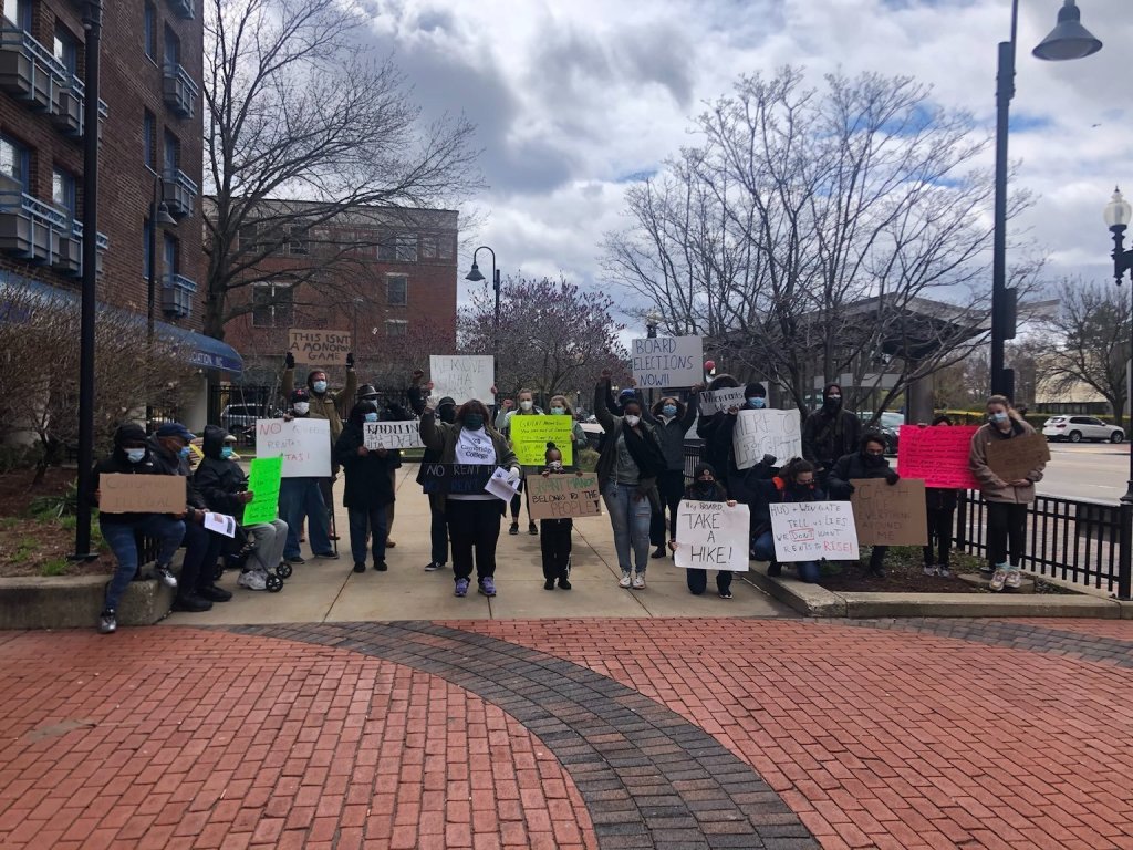 Residents at Grant Manor protest the rent hike.