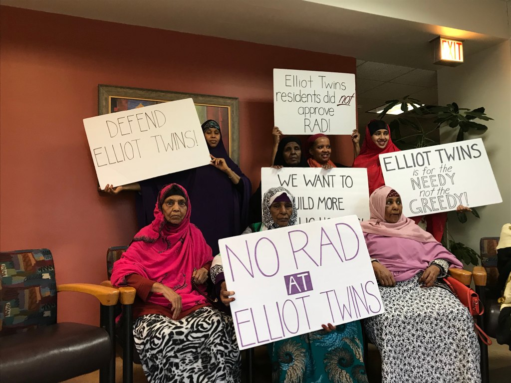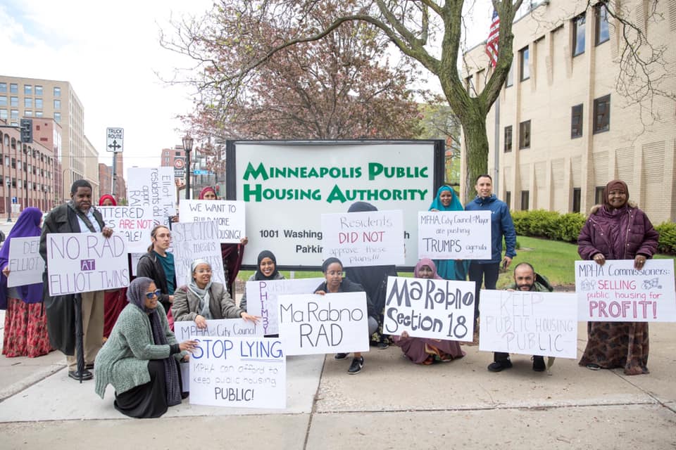 A protest in Minneapolis against privatization under the RAD scheme, which was created by HUD during the Obama administration and allows public housing authorities to hand over developments to private companies. “Ma Rabno” means “we don’t want” in Somali.